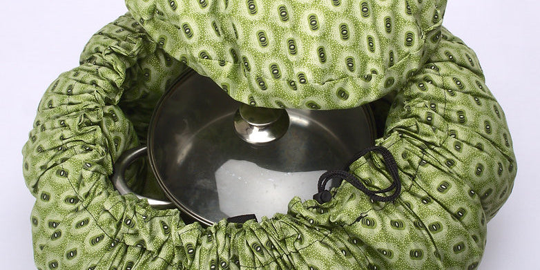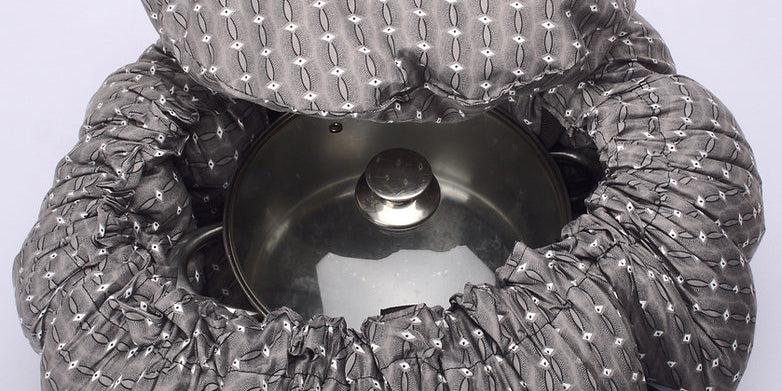 After bringing a pot of food to the boil and placing it in a Wonderbag, the food will continue cooking for up to eight hours without any additional energy source.