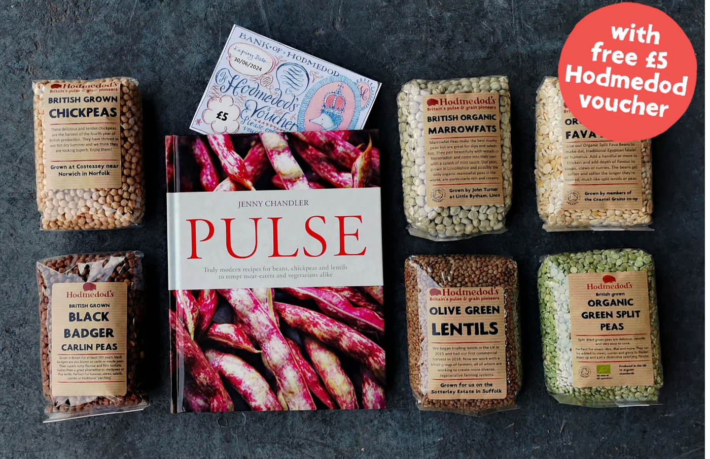 We were thrilled to see the collaborative Pulse Book Bundle (£39.99) featuring Jenny Chandler's classic pulse cookbook, Hodmedods' superb British-grown pulses (chickpeas, lentils, beans, and peas), and a £5 voucher.