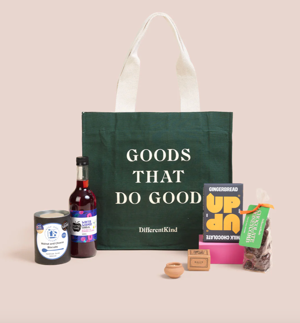 Top of our list is their Winter Warmers Hamper (£65) which includes Gingerbread (UpUp), Single Rahul Candle (Dalit), Cheese & Walnut Biscuits (Step & Stone), Chocolate Honeycomb (Different Made) and a Winter Warmer Cordial (Fruits of the Forage) sent in a Different Kind Tote Bag.